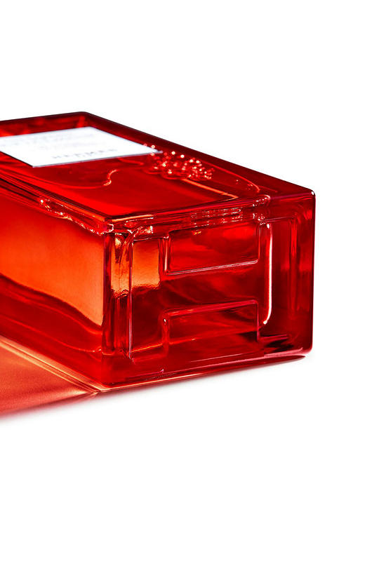 The straight lines of the bottle are embellished with scarlet, emblematic of Eau de rhubarbe ecarlate, and two signature details: the H imprint of the base and the Clou de Selle engraved on the pump.