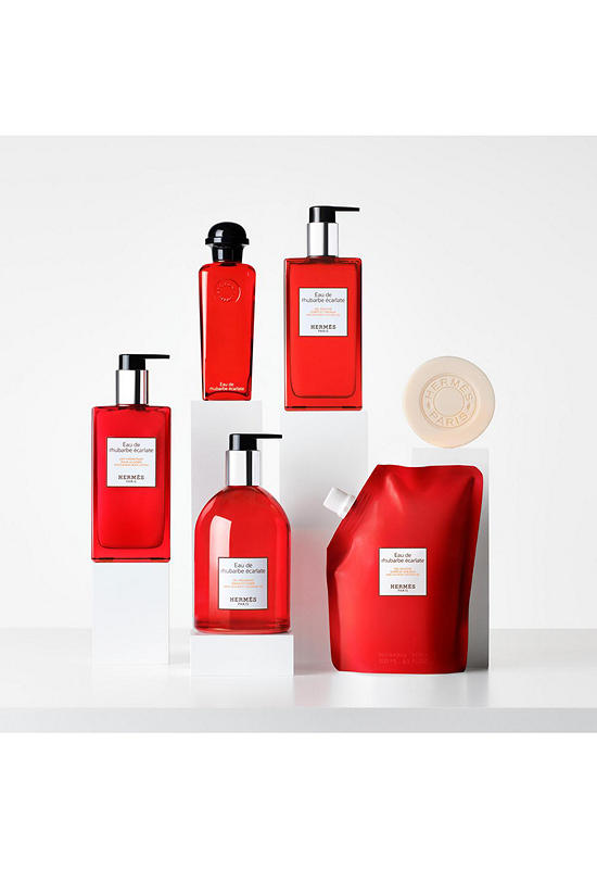 Eau de rhubarbe ecarlate expresses the joyful and generous freshness of the colognes in the form of a shower gel. Another way to wear fragrance.