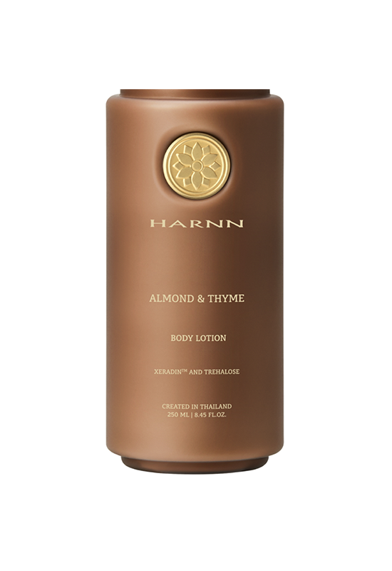 ALMOND & THYME BODY LOTION 250 ML. Infused with natural extracts and nutrients, HARNN Almond & Thyme Body Lotion helps in maintaining the softness, suppleness and radiance of skin. This ultra-moisturizing body lotion is specially formulated to provide long-lasting hydration. Enriched with Flavonoids from Clary Sage, a special xerophyte plant that targets skin moisturizing. Thanks to Virgin Chia Seed Oil, Macadamia Oil, Jojoba Seed Oil and Oats for promoting smoothness, softness and suppleness to the skin, while Glycerin, Trehalose and Vitamin E, add extra hydration for a smoother complexion. Suitable for all skin type. Including Dry-Very Dry Skin.