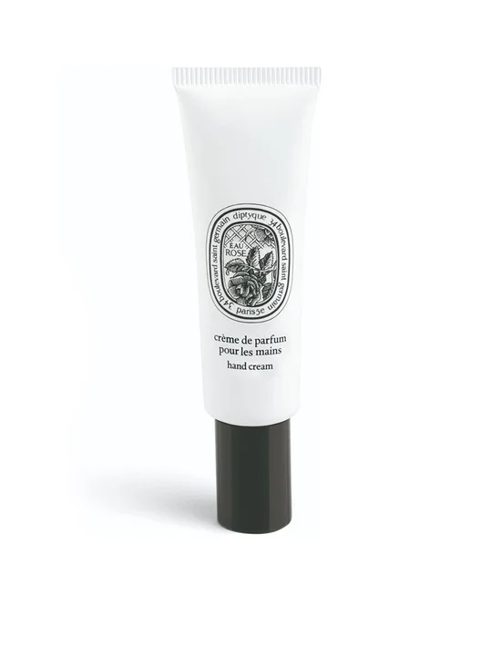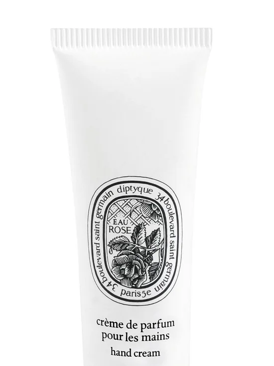 Hand Cream Eau Rose from DIPTYQUE This velvety lotion is formulated especially to protect your hands while scenting them. It contains aloe vera and macadamia oil, both of which protect and repair, and can also be used to nourish the cuticles and nails.Pick up the petals of a pink rose. Gently, taking care not to crush them. Add its green leaves, a few thorns and its stem. And don't forget its buds. Immerse it all in some clear water and wait... for as long as it takes. The perfume has to be just right. To leave all the rosy delicateness on the skin, the slightly fruity accents and barely acidulated green notes.Eau Rose is composed like an infusion of the best roses in perfumery: damascena and centifolia. It is an homage to the entire flower.