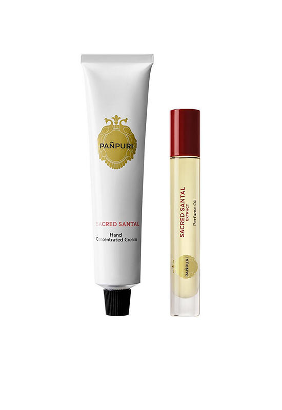 Discover the ultimate in luxurious self-care with Body & Hand Fragrance Ritual Set from PAÑPURI, which includes a Hand Concentrated Cream and the iconic PAÑPURI EXTRACT Perfume Oil that promise to awaken all your senses. A rich, hydrating hand concentrated cream that contains nurturing botanical emollients and healing Centella Asiatica to keep hard-working hands soft and lightly scented without any greasiness. The soul of sacred Indian forests echo with the warmth of Sandalwood burning in holy temples, evoking the richness of ancient meditative rituals. An unforgettable fragrance, its woody notes are enhanced by the earthy smoothness of Orris Root that when blended with the rare Sandalwood grounds the soul on a spiritual pilgrimage across Asia.