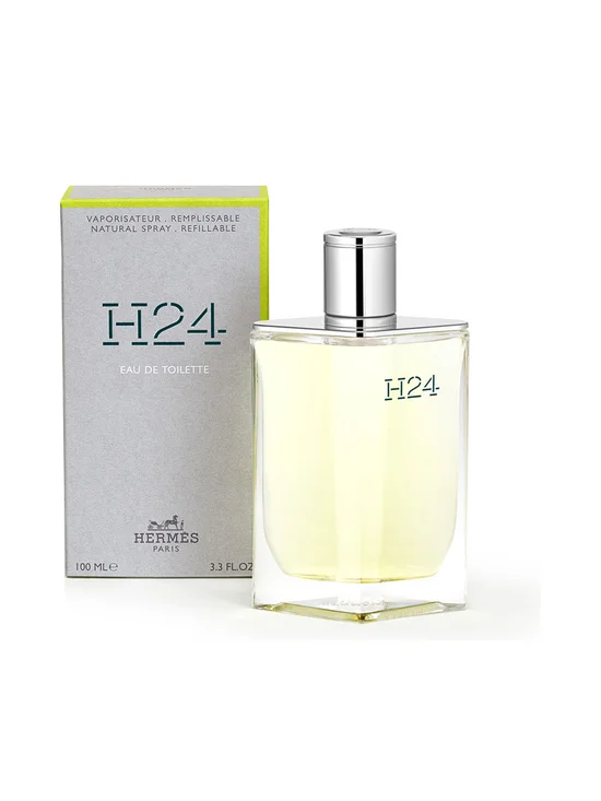 Perfume from the brand HERMÈS THE CREATION Created by Hermès perfumer Christine Nagel, H24 Eau de Toilette is the first olfactory expression of contemporary man according to Hermès. It is a bright and radiant fragrance, stemming from the daring blend of nature and technology. OLFACTORY NOTES The aromatic, botanical freshness of H24 Eau de Toilette is underpinned by a blend of enveloping clary sage, electric narcissus, invigorating rosewood and warm, metallic sclarene. THE OBJECT Designed by Philippe Mouquet, the bottle expresses the momentum and energy of contemporary man. Its urban grey box adorned with a lime-green line delimits and opens up the space.