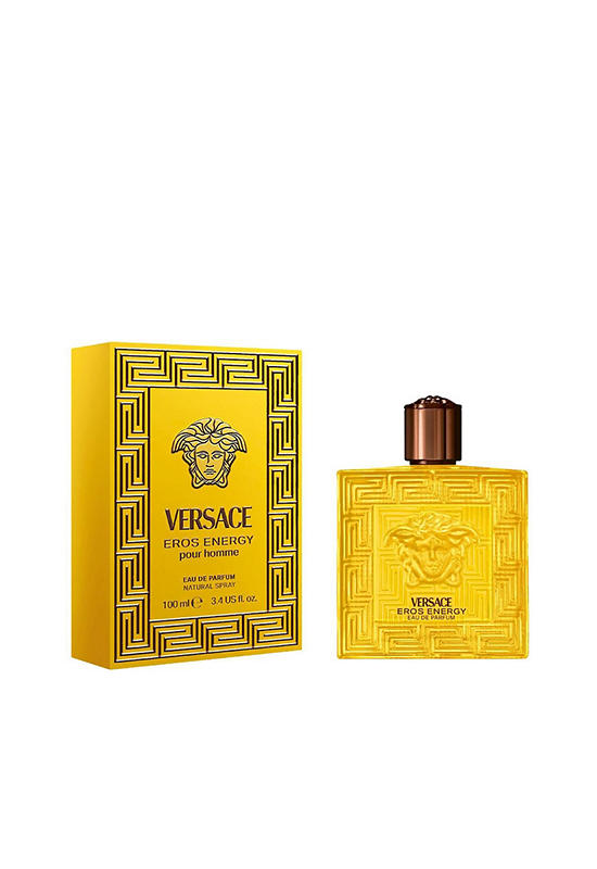 Versace Eros Energy turns to yellow to highlight the still contemporary lines of the bottle. A clear reference to the freshness of Italian citruses and mediterranean coastline. The strength of Eros is expressed by the magnificent Medusa at the center. The Greek fret creates a strong visual emotion. The bronze coloured cap is elegant like a precious jewel.