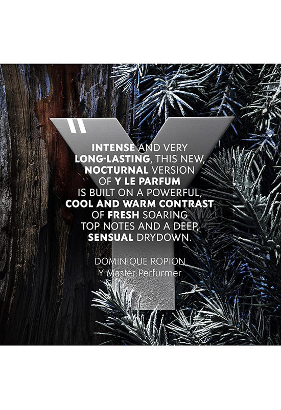 Y, THE NEW LE PARFUM, the scent of the self-accomplished man, embodying the intense blue night. A sensual freshness expressed by the tension between the white and dark accords of this unique fougère scent, crafted by master perfumer, Dominique Ropion.