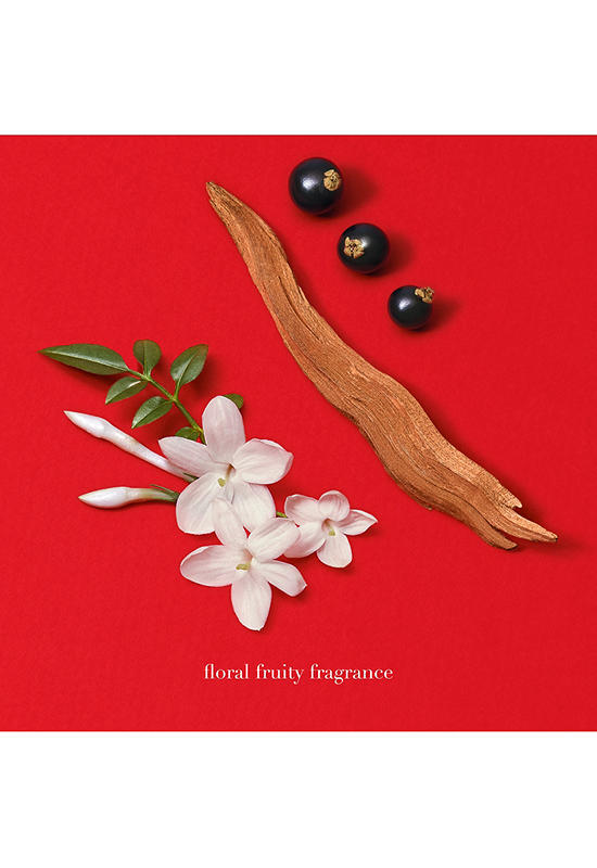 Opening with blackcurrant essence and a joyful pear, the heart notes of the fragrance feature a blend of rose and jasmine, revealing the quintessence of femininity through purity, contrasts and absolute clarity. The base, vibrant and sensual, mixes intense vanilla and cedarwood to express the boldness of passion.