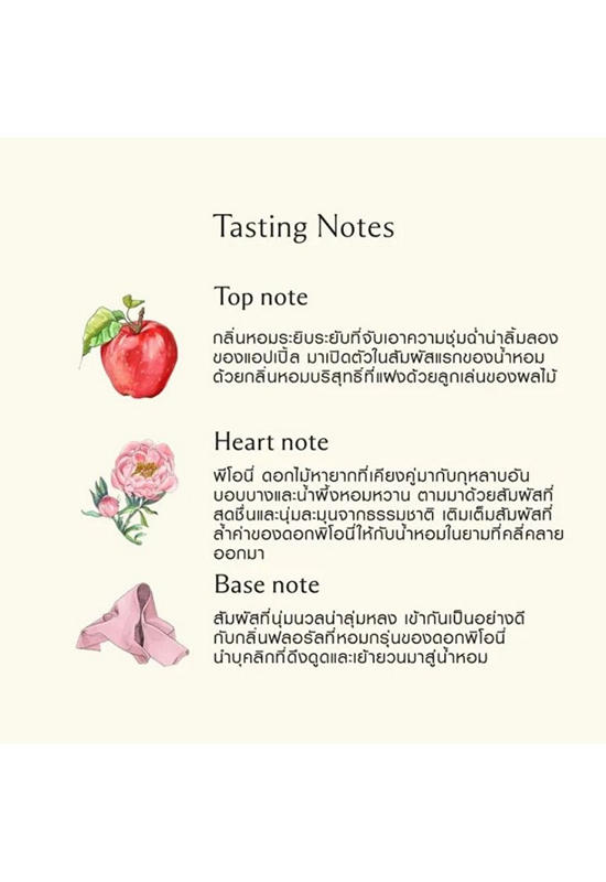 The essence of charm.  Peonies in voluptuous bloom, exquisitely fragile.  Flirtatious with the juicy bite of red apple and the opulence of jasmine, rose and gillyflower.  Mingling with the sensuality of soft, blush suede.  Luxurious and seductive.