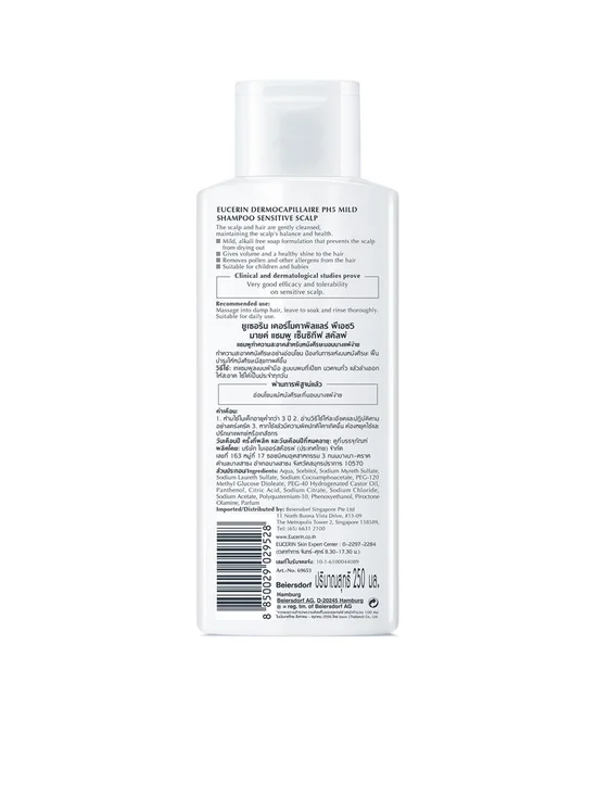 Подробное описание товара на сайте поставщика https://www.central.co.th/en/eucerin-dermocapillaire-ph5-mild-shampoo-250-ml-cds30174283
