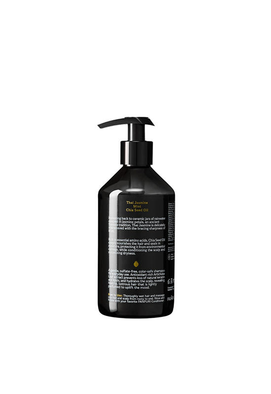 Hair Cleanser from PANPURI. This PAÑPURI signature blend beguiles with its exotic floral notes, harkening back to the scent of jasmine steeped in ceramic jars of rainwater, an ancient Siamese tradition to refresh the senses. Imbued atop the honey-colored Thai Jasmine is the bracing sharpness of Mint to delicately weave together a rich and uplifting fragrance.