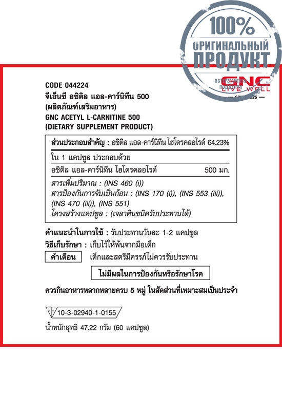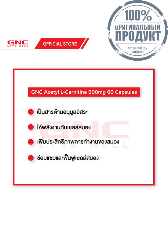 Подробное описание товара на сайте поставщика https://www.central.co.th/en/gnc-acetyl-l-carnitine-500mg-60-capsules-mkp1083137