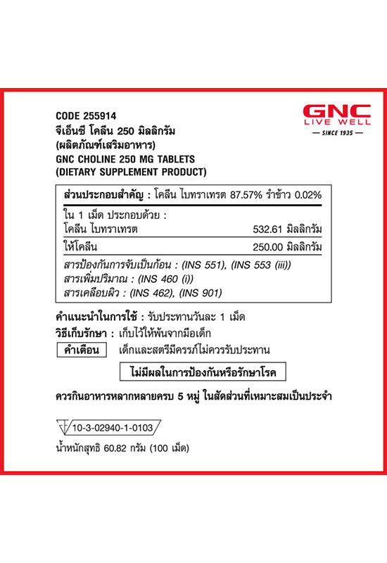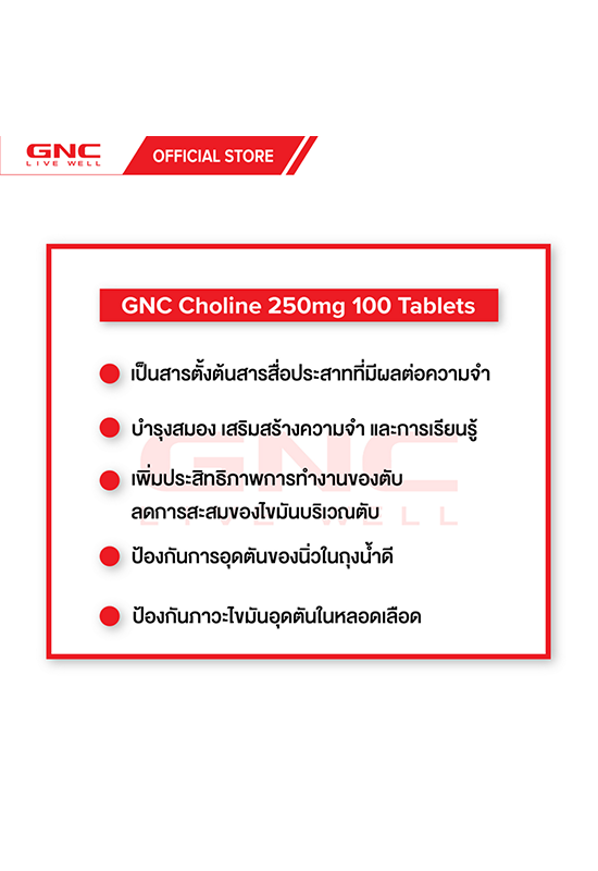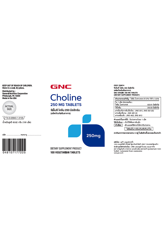 Подробное описание товара на сайте поставщика https://www.central.co.th/en/gnc-choline-250mg-100-tablets-mkp1080722