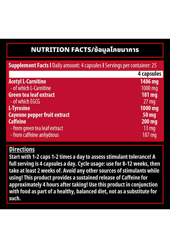 Подробное описание товара на сайте поставщика https://www.central.co.th/en/scitecnutrition-fat-burn-turbo-ripper-100-caps-mkp0891468