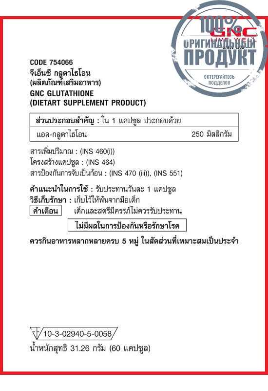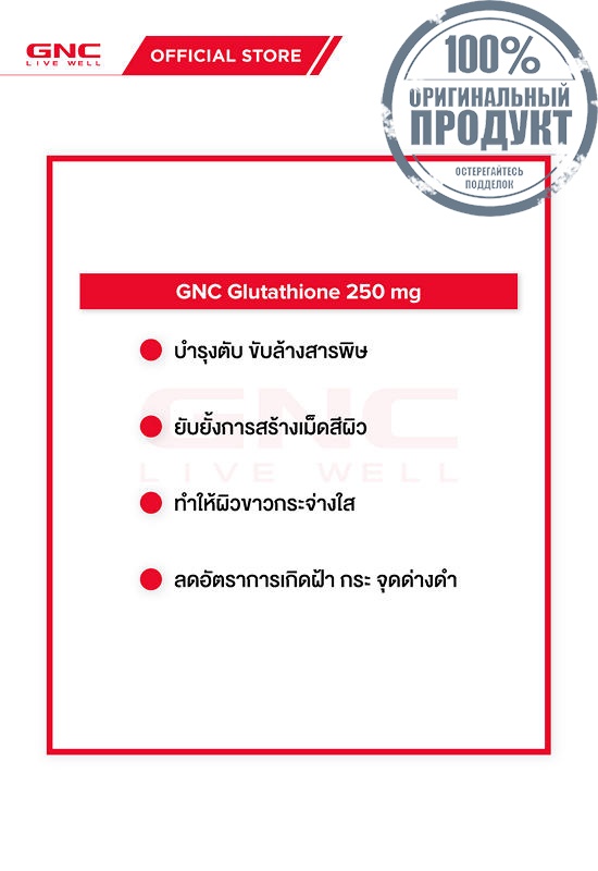 Подробное описание товара на сайте поставщика https://www.central.co.th/en/gnc-glutathione-250mg-60-capsules-mkp1950455