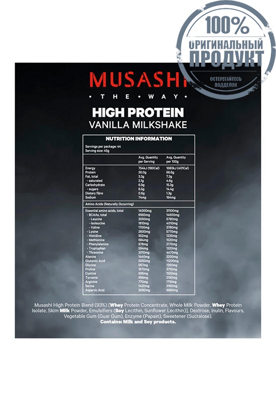 Подробное описание товара на сайте поставщика https://www.central.co.th/en/musashi-high-protein-375g-vanilla-mkp0005268