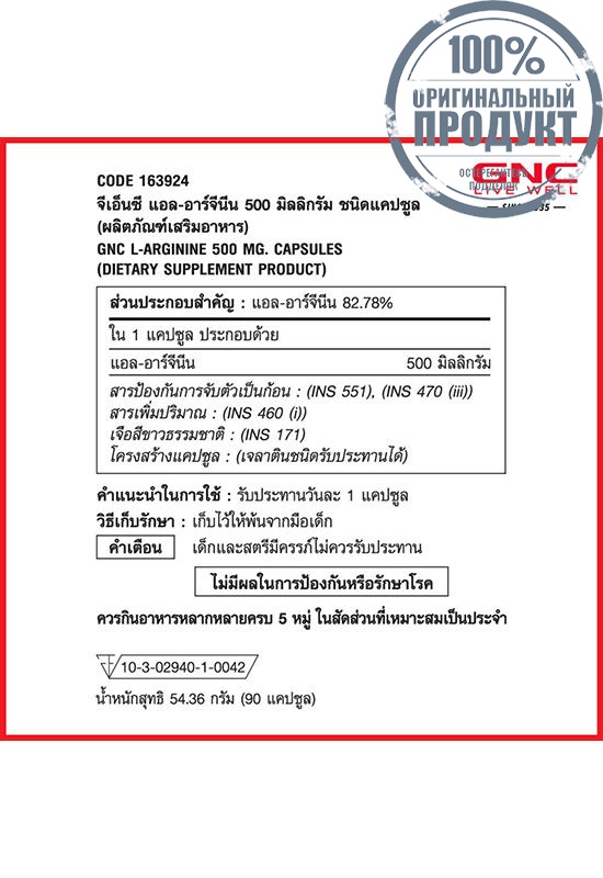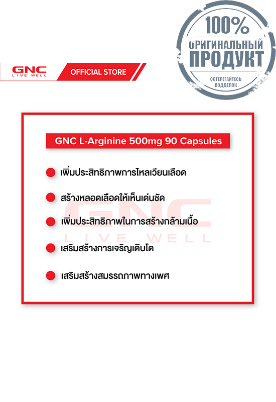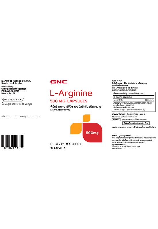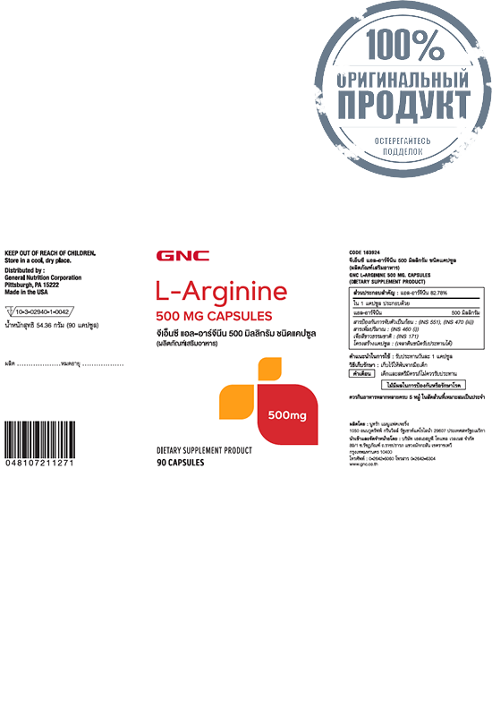 Подробное описание товара на сайте поставщика https://www.central.co.th/en/gnc-l-arginine-500mg-90-capsules-mkp1211472
