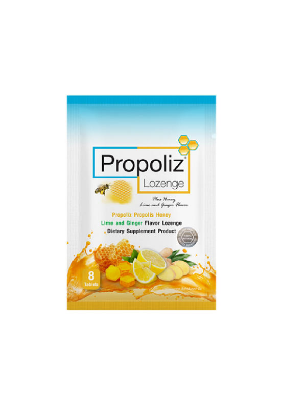 - โพรโพลิซ ชนิดเม็ดอม เม็ดอมแก้เจ็บคอ ไอ ระคายเคืองคอ ทำให้ชุ่มคอ
