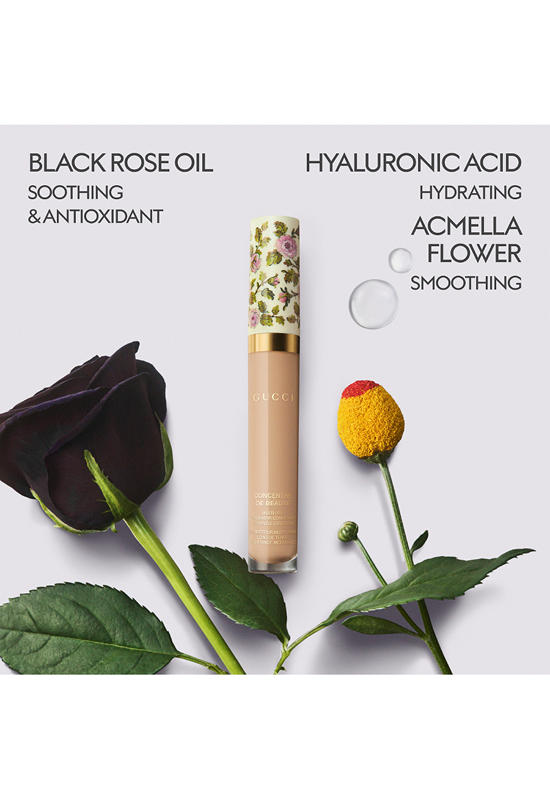 GUCCI Concentré De Beauté liquid concealer is the multi-use tool to carry with you – anywhere and everywhere. This lightweight and stretchable texture can be used for targeted and all-over application to conceal, brighten and even the skin. It blends well for a long wear yet breathable, second-skin finish. Powered by skin-caring ingredients, this Gucci concealer is non-drying, non-marking, non-creasing and delivers soothing, hydrating and smoothing properties. Skin and eye bags look smoothed over time. Available in 25 shades.