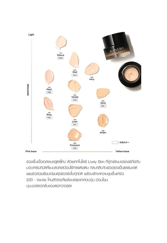 • 230 - Vanilla : A neutral shade that exudes a rich and gentle atmosphere, reminiscent of vanilla flowers.