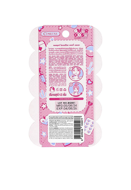 Подробное описание товара на сайте поставщика https://www.central.co.th/en/cosluxe-lipstick-overdose-cloudy-velvet-45-g-grcds11525010059
