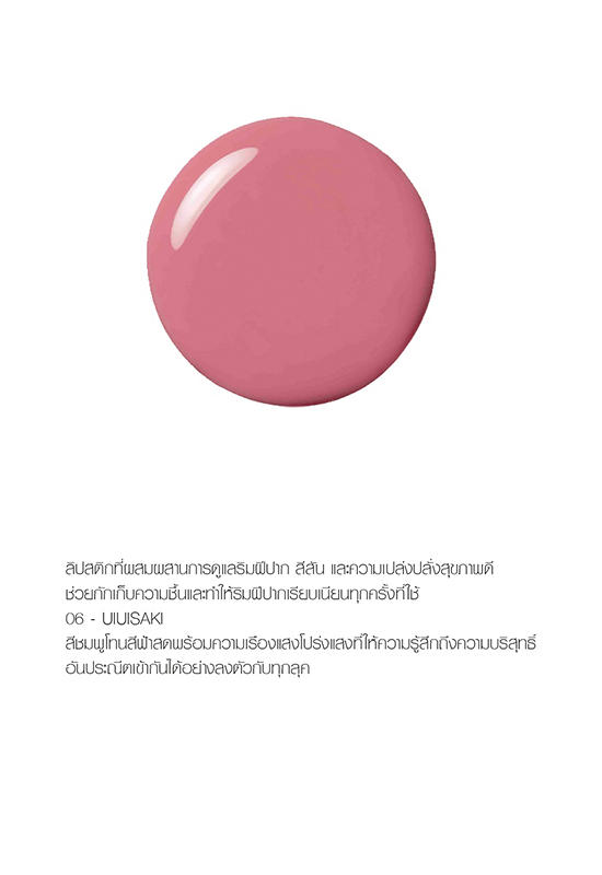 • 06 - UIUISAKI A fresh, blue-toned pink with a translucent glow that brings a sense of refined purity. It blends effortlessly into any look—perfect for adding a touch of color or a soft, airy finish.
