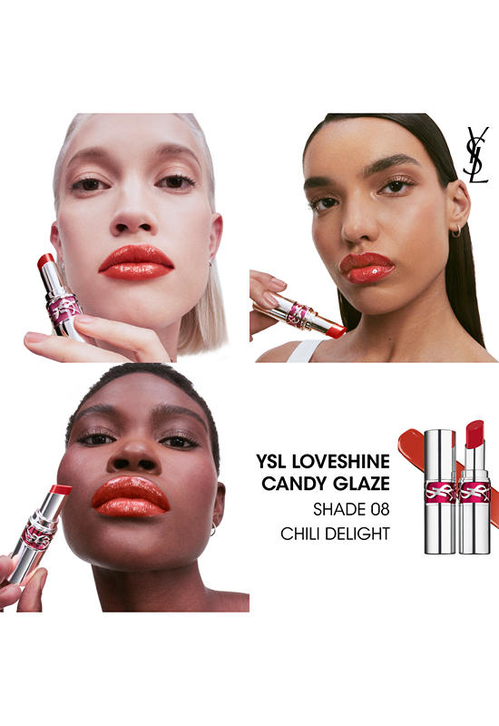 Joining YSL Beauty’s iconic Rouge Volupté Shine lipstick family, the new Candy Glaze collection represents a fresh take on glossy color that’s inspired by sugar-glazed fruits, and made for the pleasure-seeking Gen Z girl. Get super-sweet lips, drenched in watery shine and all the caring benefits of a balm; it’s time to feel high on pleasure with new Candy Glaze.
