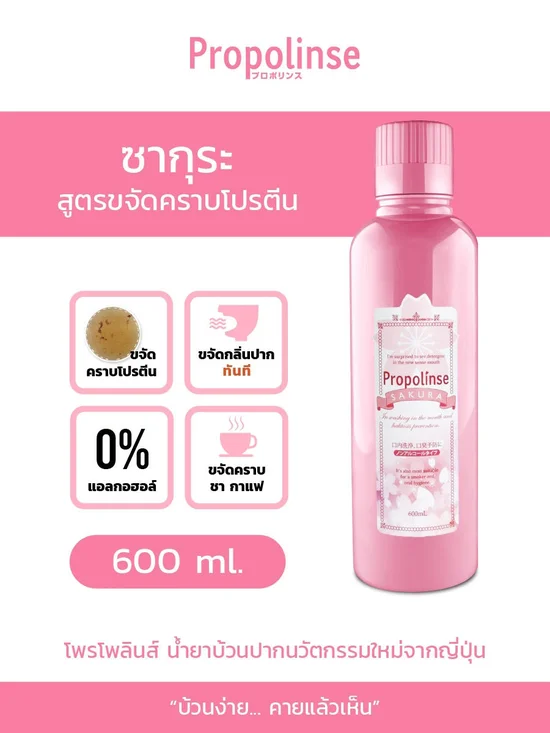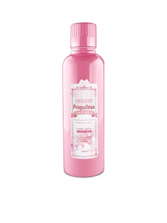 PROPOLINSE Innovative Japanese Mouthwash (Sakura Flavor) NO ALCOHOL Contains propolis and greentea extract Removes protein particle and bacteria causing your bad breath Gives you a soothing and refreshing feeling