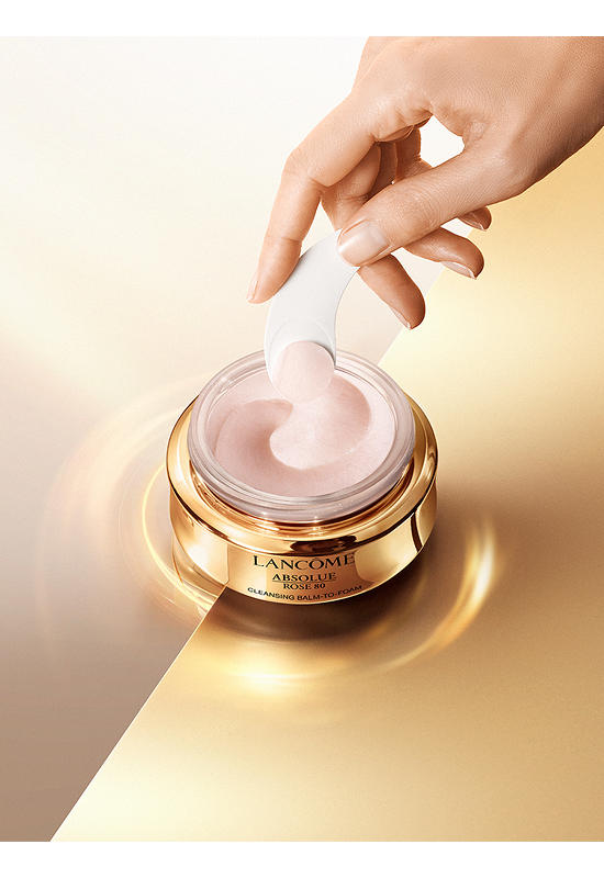 Absolue Balm-to-foam 150 mL from the brand LANCÔME. A new era of Longevity Science. AMPK, the longevity molecule found in every skin cell, is known as the Youth Master Switch, and is actived by the one and only Absolue Perpetual Rose Extract™.