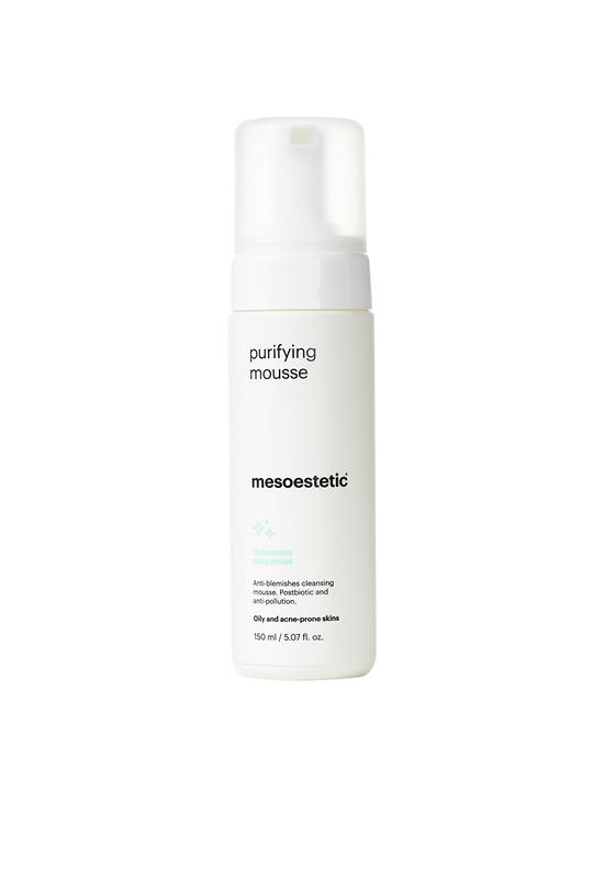 MESOESTETIC Cleanser Purifiying Mousse Balancing, anti-pollution cleansing facial foam for oily and acne-prone skin. Enhances unclogging of pores and prevents imperfections.