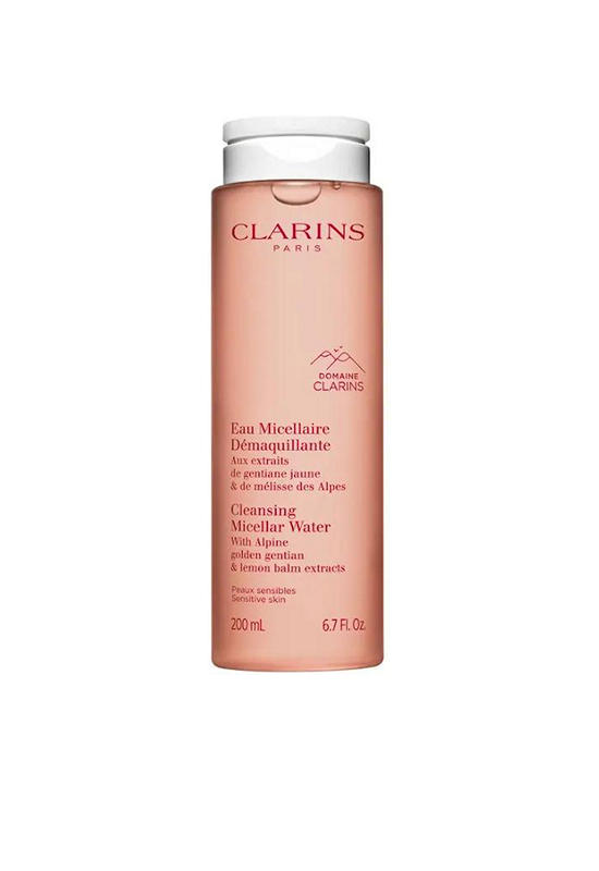 CLARINS A refreshing micellar cleansing water with purifying Alpine herbs and microscopic cleansing spheres that removes light makeup, impurities, and pollutants while preserving a healthy balance of the skin's microbiota. Leaves skin instantly soft, smooth, and pristine-clean all in one step no need to rinse.