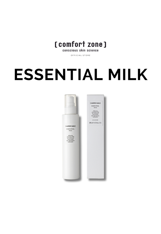 ESSENTIAL MILK is a gentle cleansing milk suitable for daily use, designed to remove impurities and residual makeup, leaving the skin smooth and supple. It helps maintain the balance and moisture of the skin, giving it a naturally radiant appearance. Comprising up to 92% natural ingredients, it is free from silicones.