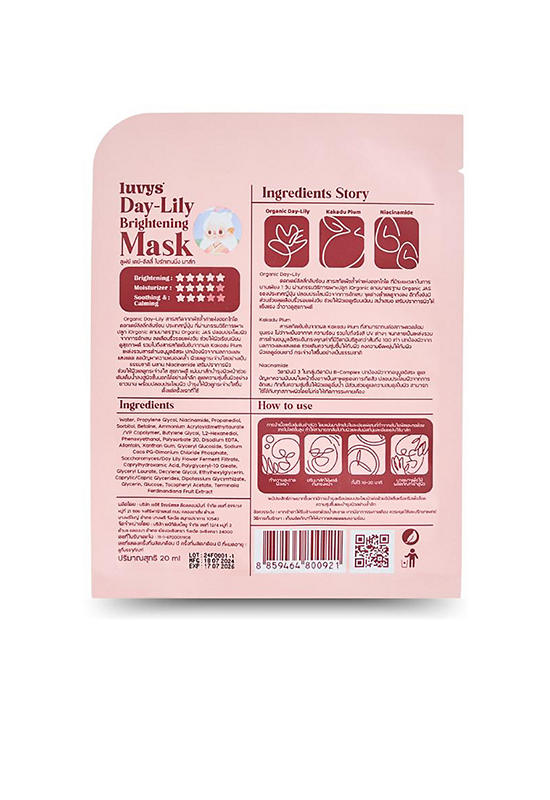 Подробное описание товара на сайте поставщика https://www.central.co.th/en/luvys-mask-day-lily-brightening-20-ml-cds15911377