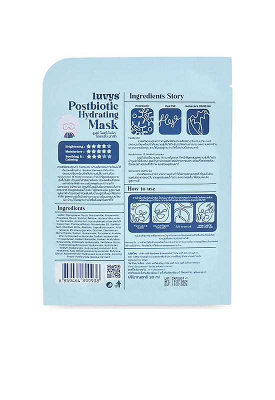 Подробное описание товара на сайте поставщика https://www.central.co.th/en/luvys-mask-postbiotic-hydrating-20-ml-cds15911391