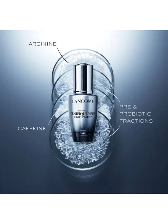 Advanced Génifique Light Pearl from LANCOME brand. SEE BIGGER, YOUNGER & STRONGER EYES The delicate eye area faces high pressure. Overtime, eye area may become fragile, and signs of aging may appear. Advanced Génifique youth-activating eye & lash formula, now with microbiome science. Experience the 360° efficacy of the eye contour serum to reveal brighter, stronger and younger-looking eyes: 91% see reduced fine lines, 91% see reduced bags, 98% feel smoother eye contours**