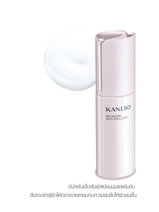 KANEBO Feel your skin hydrated and brimming with moisture. A rich and smooth textured emulsion that blends easily into your skin to maintain the skin's moisture and oil balance. BOUNCING RICH EMULSION: A rich melting texture. BOUNCING RICH EMULSION: A rich melting texture.