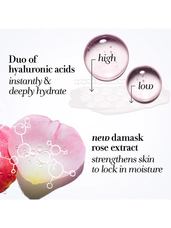 • This lightweight moisturizer delivers 72-hour deep hydration1 in three ways: High & low molecular weight hyaluronic acids instantly and deeply hydrate while time-release technology delivers continuous hydration. Damask rose extract strengthens the skin’s barrier to lock it all in, resulting in dewy skin that’s plumped with moisture.