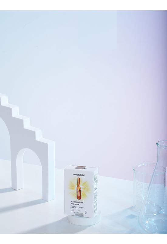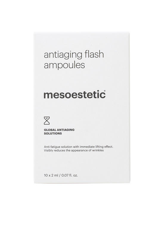 MESOESTETIC Antiaging and anti-fatigue solution. Antiaging shock treatment, immediate lifting effect. More rested, brighter appearance. Beauty treatment, immediately before make-up to improve skin finish.