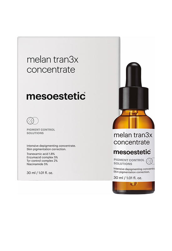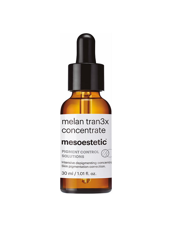 MESOESTETIC Melan Tran3x Concentrate Intensive depigmenting serum that progressively removes the existing pigmentation, reducing dark spots with an excellent dermal tolerance. helps to prevent further dark spots and maintain the results of other treatments.