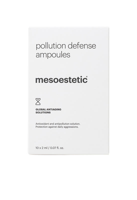 MESOESTETIC Skincare Pollution Defense Ampoules, antioxidant and anti-pollution solution. Prevents aging, moisturizes. Particularly indicated in continuous exposure to urban environmental contamination and in smokers.