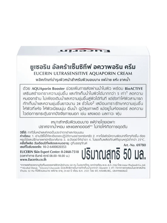 Подробное описание товара на сайте поставщика https://www.central.co.th/en/eucerin-ultrasensitive-aquaporin-cream-50-ml-cds88741123
