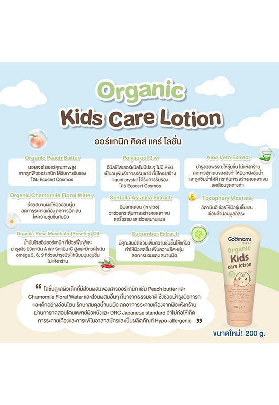Подробное описание товара на сайте поставщика https://www.central.co.th/en/godmami-organic-kids-care-lotion-mkp0619822