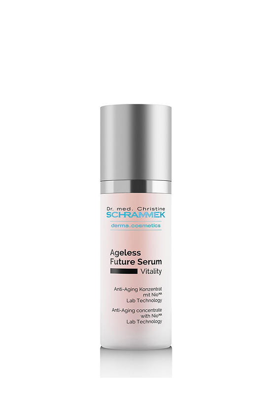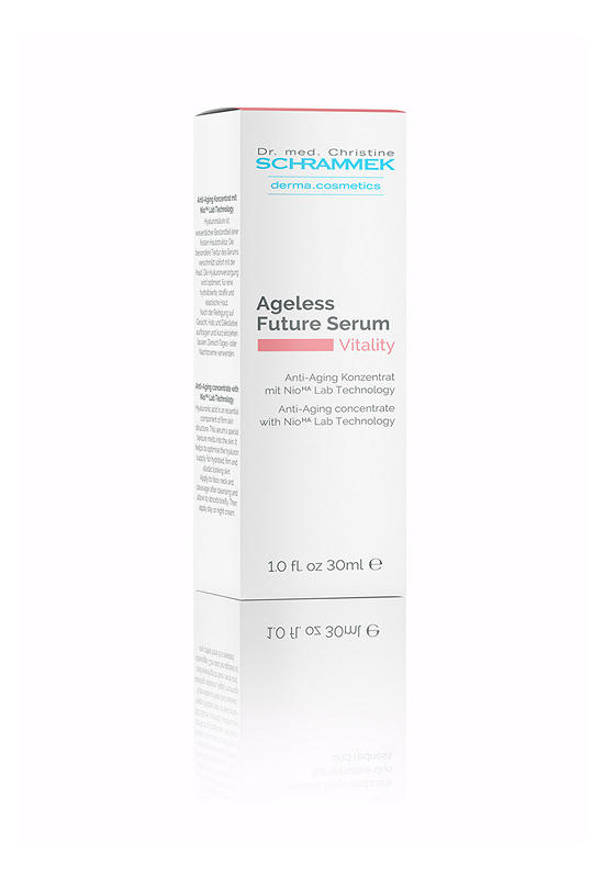 The highly dosed ingredient concentrate regenerates and protects mature skin against loss of elasticity. Encapsulated hyaluronic acid (NioHA Lab Technology) has a revitalizing effect and provides deep stabilization of the hyaluronic acid content. Bakuchiol naturally supports the skin’s own collagen production. The complexion appears firmer and more elastic. The delicate texture of the Ageless Future Serum blends immediately with the skin and leaves a pleasant, soft skin feeling.