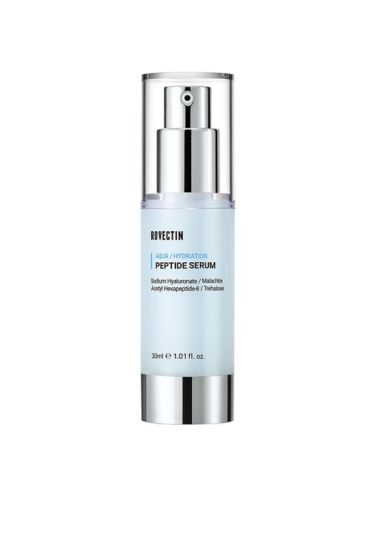 Rovectin Aqua Peptide Serum helps restore the appearance of aging skin. The Aqua Cell Activator combines hyaluronic acid, trehalose, and Vitamin E to hydrate and firm skin. Niacinamide replenishes skin to help improve uneven skin tone, smooth fine lines, and strengthen damaged skin surface. Peptides, tiny proteins and active molecules from collagen, provide significant anti-aging benefits.