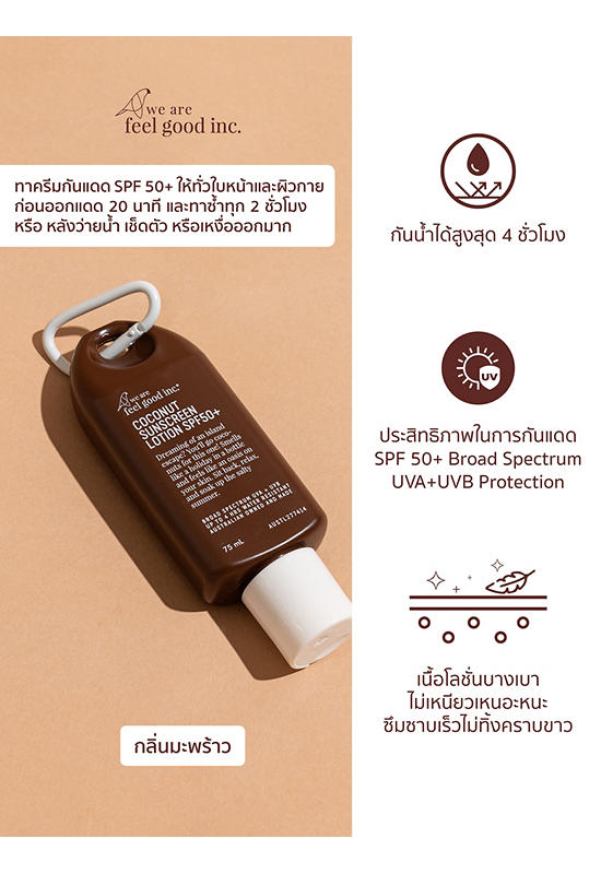 Подробное описание товара на сайте поставщика https://www.central.co.th/en/wearefeelgoodinc-coconut-sunscreen-lotion-spf-50-75ml-mkp1462614