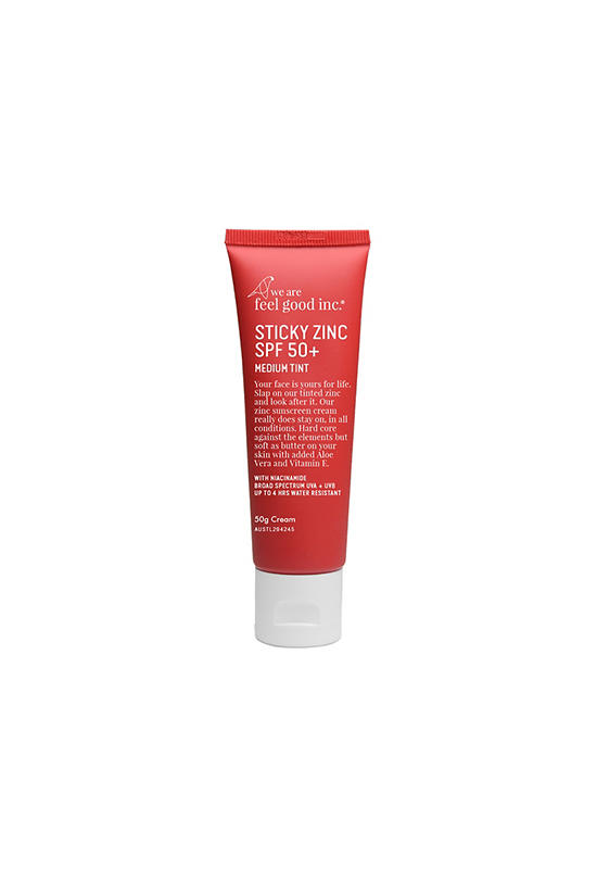 Our Sticky Zinc SPF 50+ is formulated using both physical and chemical UV filters. It is broad spectrum and up to 4 hours water resistant, with added Niacinamide (Vitamin B3), Aloe Vera and Vitamin E. Hardcore against the elements, but soft on your skin.