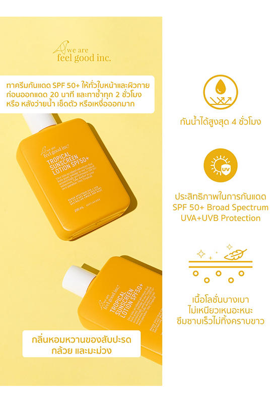 Подробное описание товара на сайте поставщика https://www.central.co.th/en/wearefeelgoodinc-tropical-sunscreen-spf50-200ml-mkp1907349