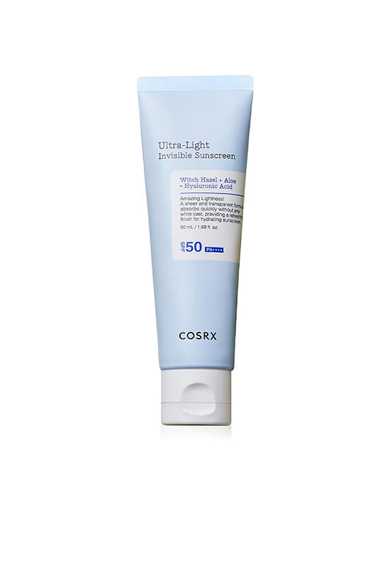 COSRX A lightweight serum-texture sunscreen that glides on easily, absorbs quickly, and leaves no sticky residue. Controls excess oil and leaves no white cast. Effectively protects skin from sunlight and UVA/UVB rays. Enriched with aloe vera, witch hazel, and niacinamide to soothe, hydrate, and cool the skin. Suitable for all skin types and gentle enough for daily use.