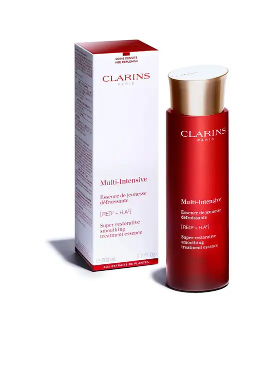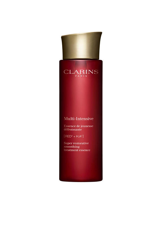 CLARINS This smoothing treatment essence, perfect for all skin types, combines powerful botanical ingredients and a hyaluronic acid complex to intensely moisturize skin for 8 hours*, while renewing and reenergizing it. Its age-specific formula helps visibly smooth and replenish. It also preps the skin to absorb skin care applied afterwards. A comforting texture that dives deep, leaving skin feeling plump and supple. Its eco-designed bottle uses a minimum of 25% recycled plastic.