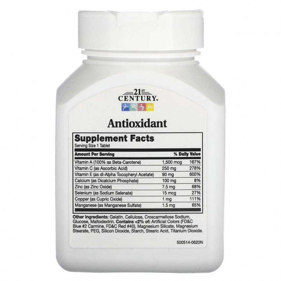 Витамины A, C и E в сочетании с необходимыми минералами селеном, цинком, медью и марганцем образуют комплексную антиоксидантную формулу.