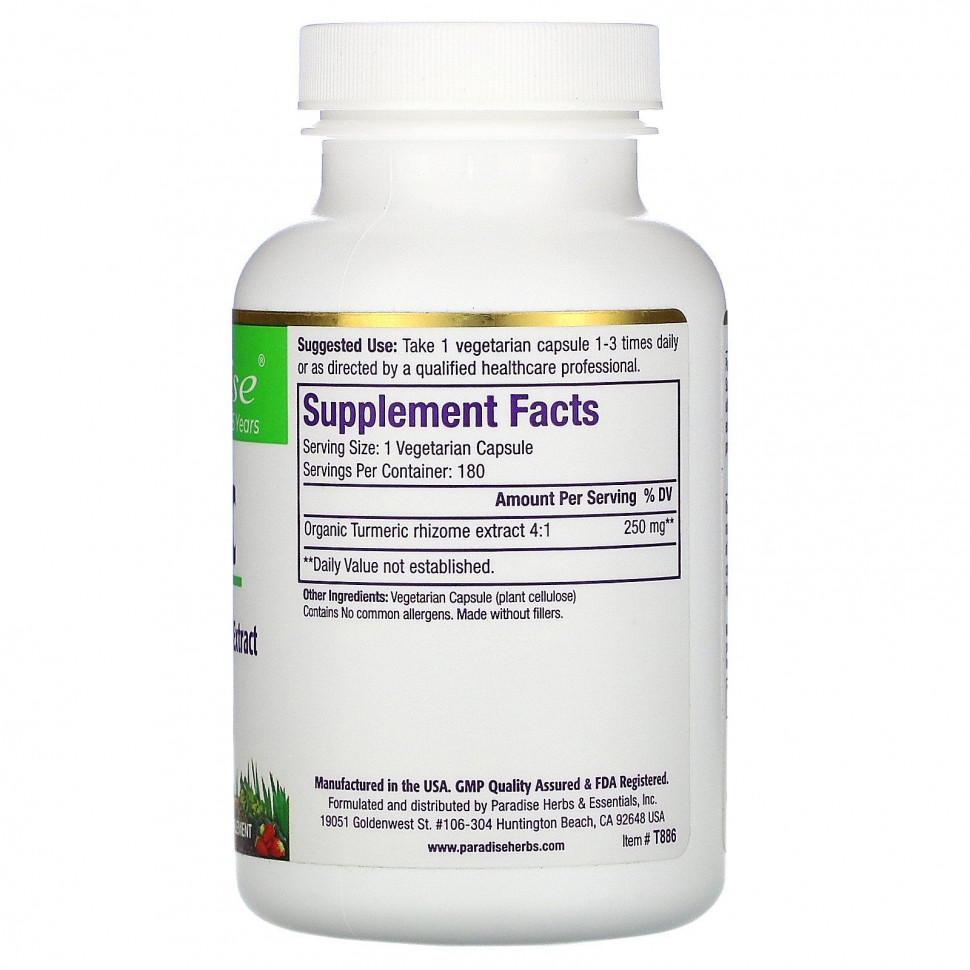 Paradise Herbs, Куркума, 180 вегетарианских капсул [19328]