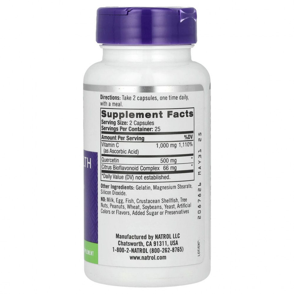 Комплекс с кверцетином от Natrol. Мощное сочетание кверцетина, высокоэффективного витамина C и комплекса цитрусовых биофлавоноидов для поддержания здоровья иммунной системы и антиоксидантной защиты.