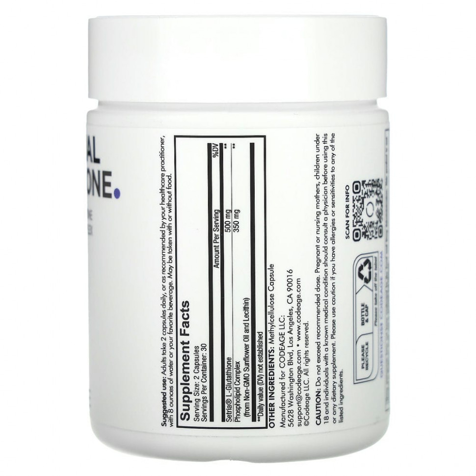 Codeage, Антиоксидант, липосомальный глутатион, 60 капсул